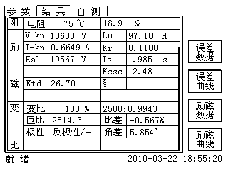 | 匝數比 | 被測試的二次繞組與一次繞組的實際匝比 | √ | √ | √ | √ | √ | √ | √ | √ | |