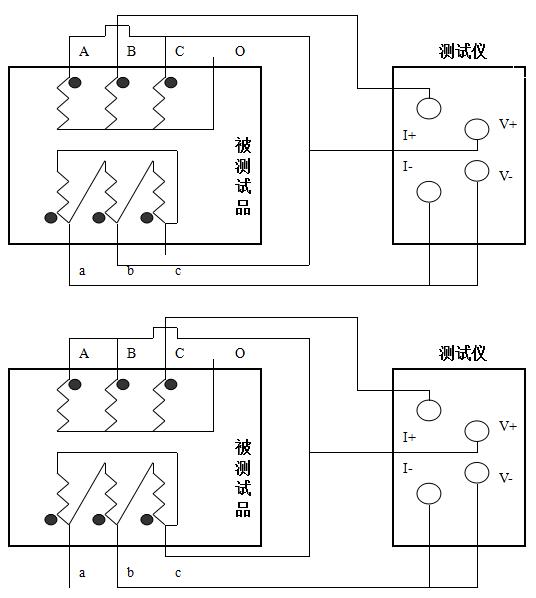 直流電阻測試儀測量低壓Rac、Rba、Rcb接線圖: