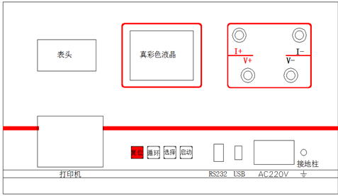 啟 動(dòng) 鍵 輸出電流選擇完畢后按下此鍵,微機(jī)控制實(shí)現(xiàn)全部測(cè)試過程。
