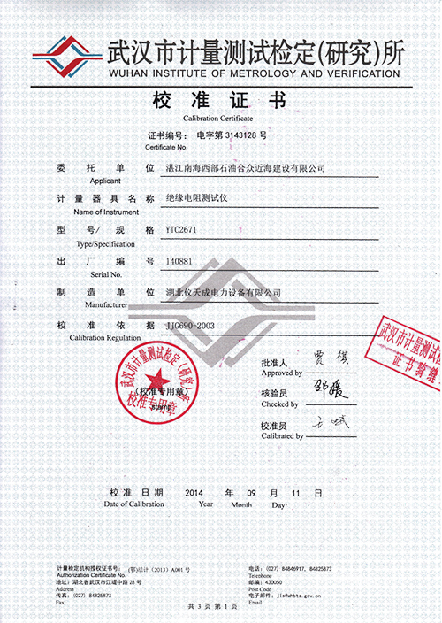 3.YTC2671數字式兆歐表不需人力作功,由電池供電,量程可自動轉換。一目了然的面板操作和LCD顯示使得測量十分方便和迅捷。