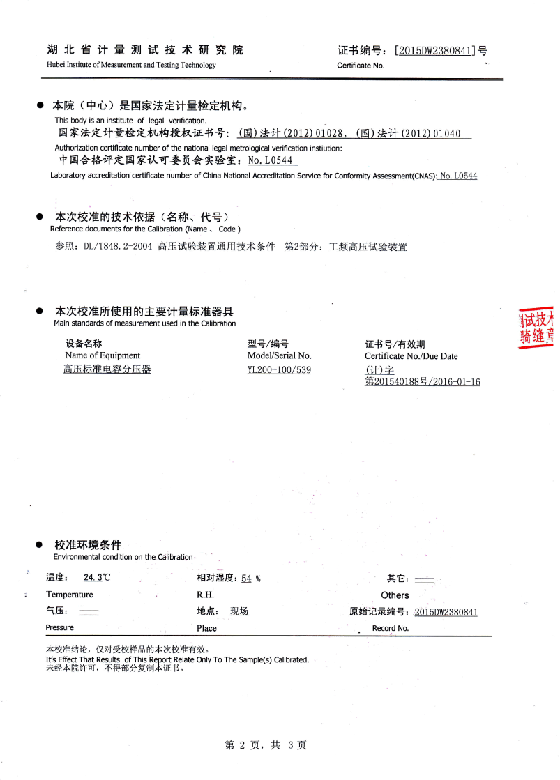 110kV及以下電壓等級(jí)電氣設(shè)備 30-300Hz 265kV 16kV