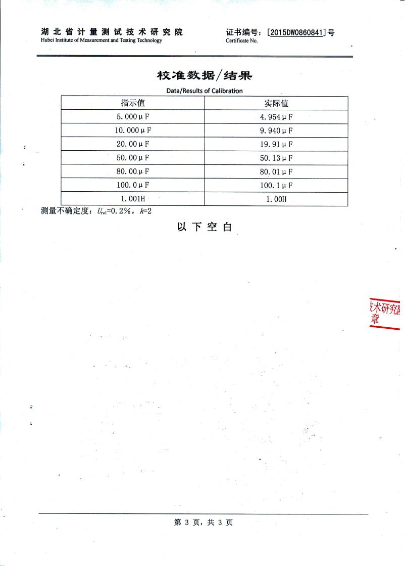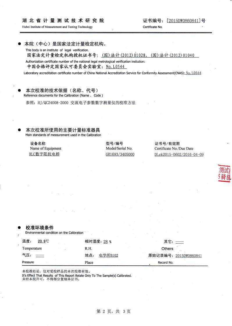 | 電感器感抗分量: | 10mΩ ~ 200kΩ | 誤差值: | ±1%; |