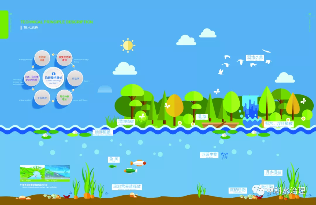 純生態:遵循地球生態圈的演變規律,人工干預為輔助,強化目標水體的生態自我修復,弱化理化技術手段,充分考慮物種的競爭關系,保障區域的生態安全。