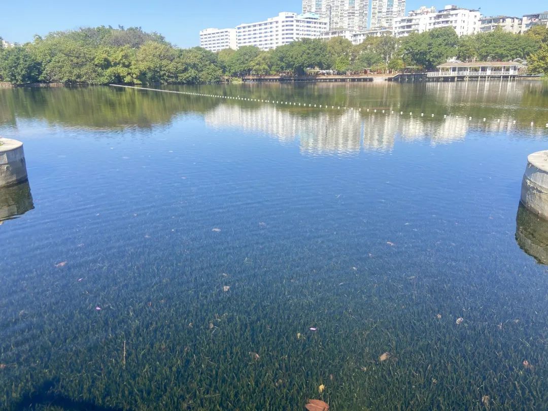 流花湖治理后主要水質(zhì)指標總磷、氨氮、COD、BOD5均已達到國家地表水Ⅳ類標準,透明度清澈見底,水下森林清晰呈現(xiàn),形成了良性的生態(tài)自我修復系統(tǒng),完美的呈現(xiàn)“水清、景美、人和”流花湖生態(tài)景觀。