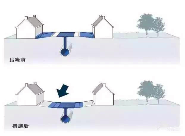 為了能吸收強降雨,擴大下水道可能是首先想到的措施。在現有的情況下,需要擴大下水系統中大部分的下水道才能達到顯著的效果 。對已建成的城區來說,這一舉措可能經久耗時,而且成本昂貴。對于新建城區,則可以直接鋪設增擴了的下水管道系統。
